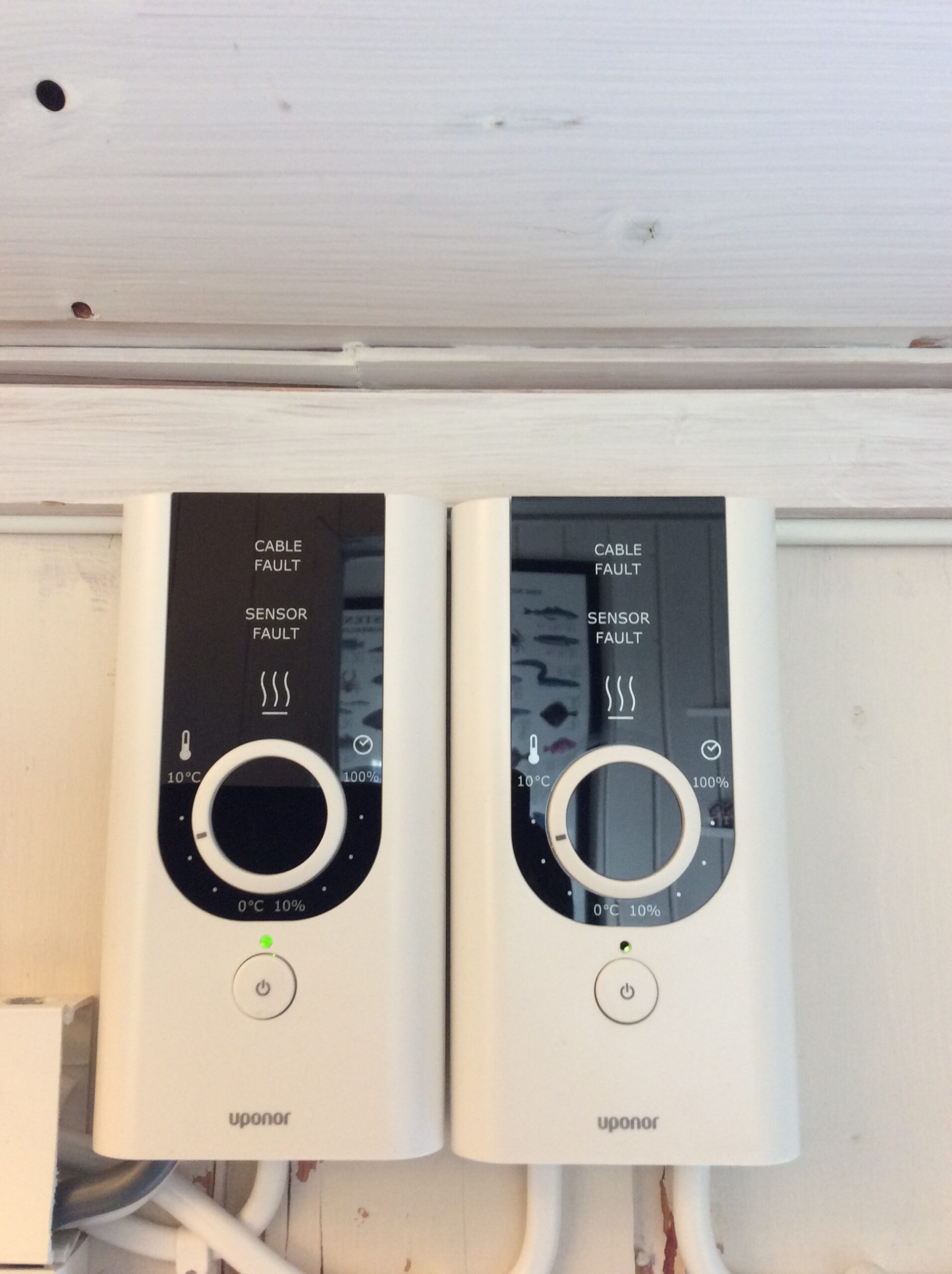 Elektrofag Jæren har bytta termostater i hytter som hadde mangler. Bilde av ny termostat under.